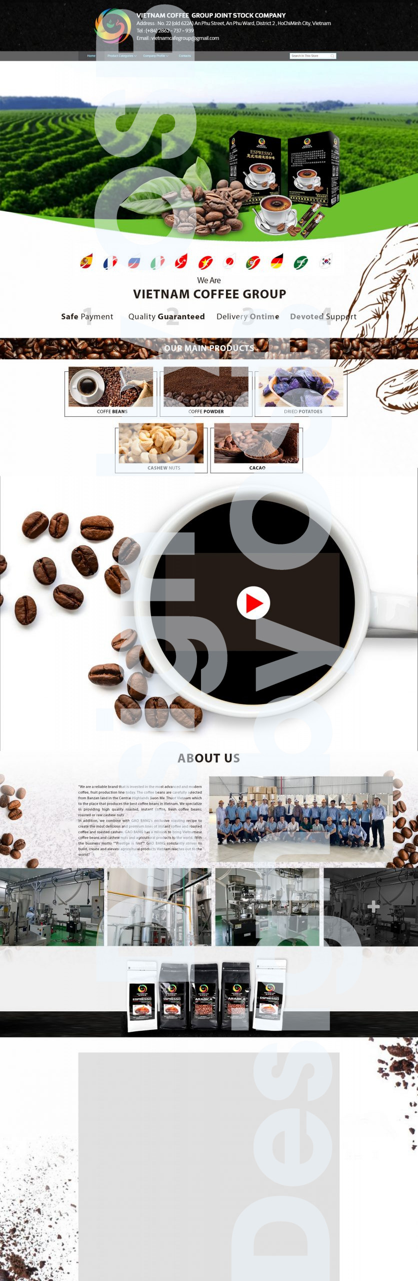Giao diện công ty Vncoffee